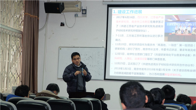 吴宏副书记介绍了江苏省技术研究员先进高分子材料技术研究所的筹建情况和项目申报条件,其他各分管领导部署了下一步的工作计划,强调了教学评估、“四青”人才申报、实验室安全管理和学生心理教育等问题。